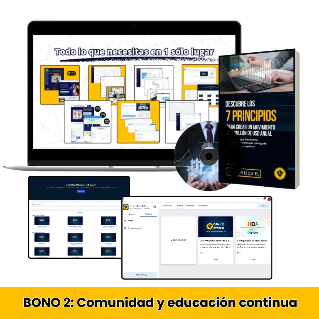 Si quieres transformar tu negocio en un movimiento rentable y adoptar una nueva mentalidad de éxito, te prometo esto: el DBH System y los 7 princicpios y nuestra comunidad Empresario Digital Pro son la clave para desbloquear tu potencial completo, en el proceso, convertir tu negocio en la máquina de ingresos que siempre has soñado.